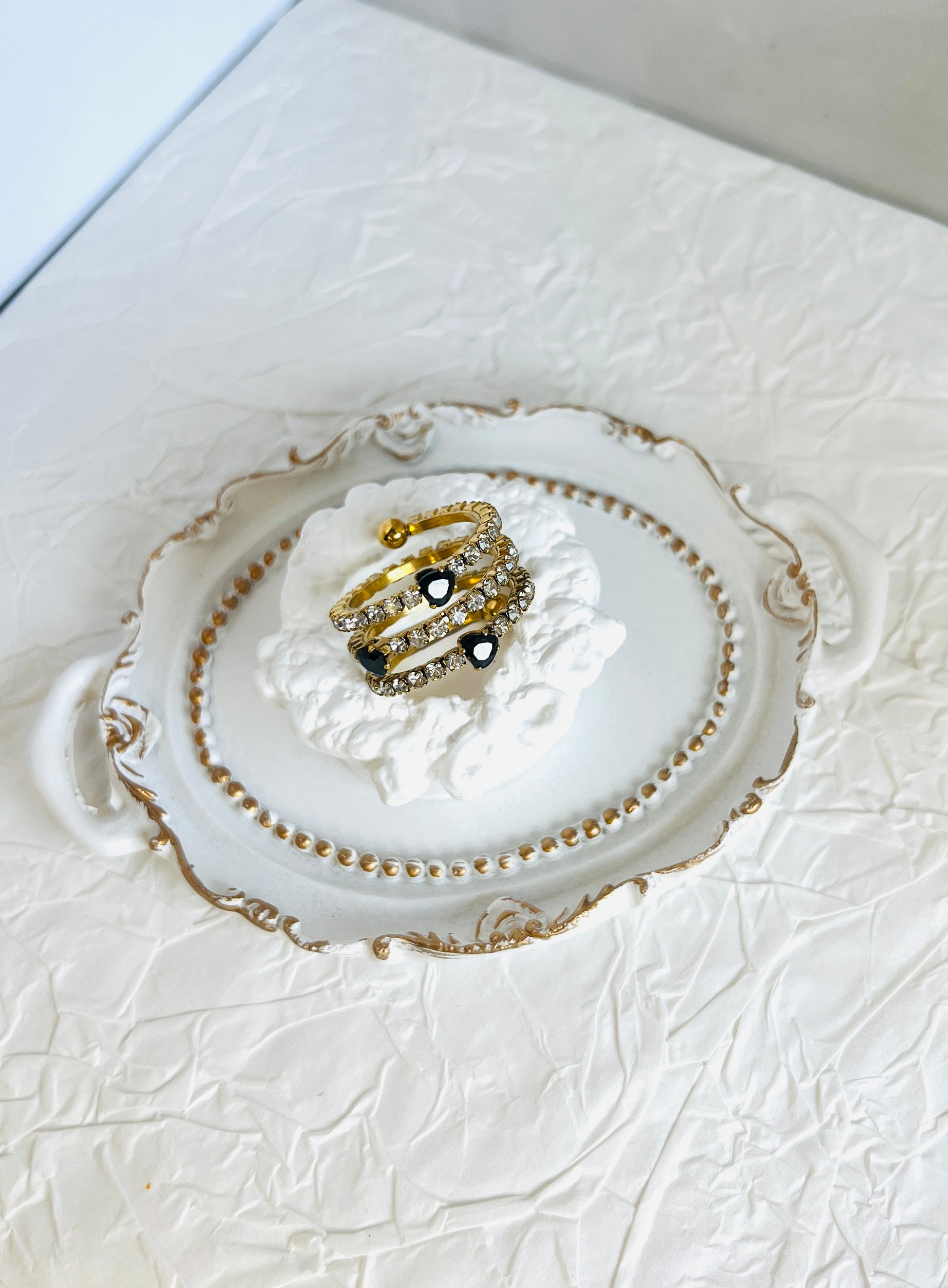 El Anillo Circe en Negro, es un triple diseño en acero inoxidable color oro, embellecido con brillantes blancos y negros que crean un contraste sofisticado. Ajustable a cualquier talla, refleja elegancia, carácter y poder. Inspirado en la diosa hechicera, simboliza magnetismo y fuerza femenina. Una joya ideal para mujeres modernas y audaces. Talla única, se adapta.