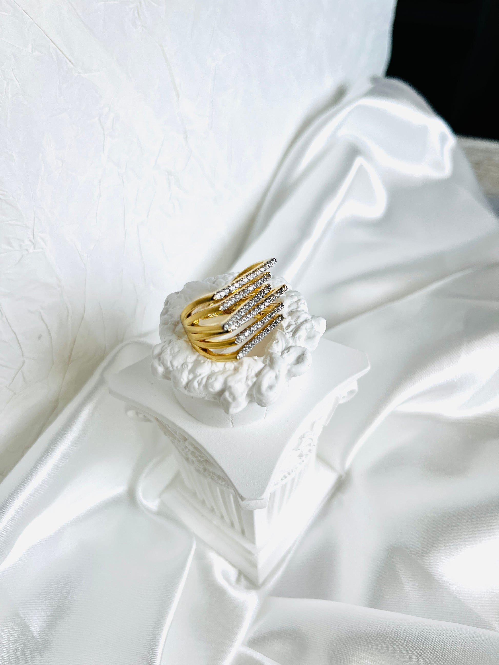 El Anillo Luz está elaborado en acero inoxidable color oro y destaca por su forma cuadrada, moderna y elegante. Adornado con brillantes en su contorno, refleja sofisticación y carácter. Inspirado en la claridad y fuerza natural de la luz, es ideal para mujeres que desean una joya con presencia, perfecta para realzar cualquier look con estilo y distinción. Talla única, por lo que se adapta.