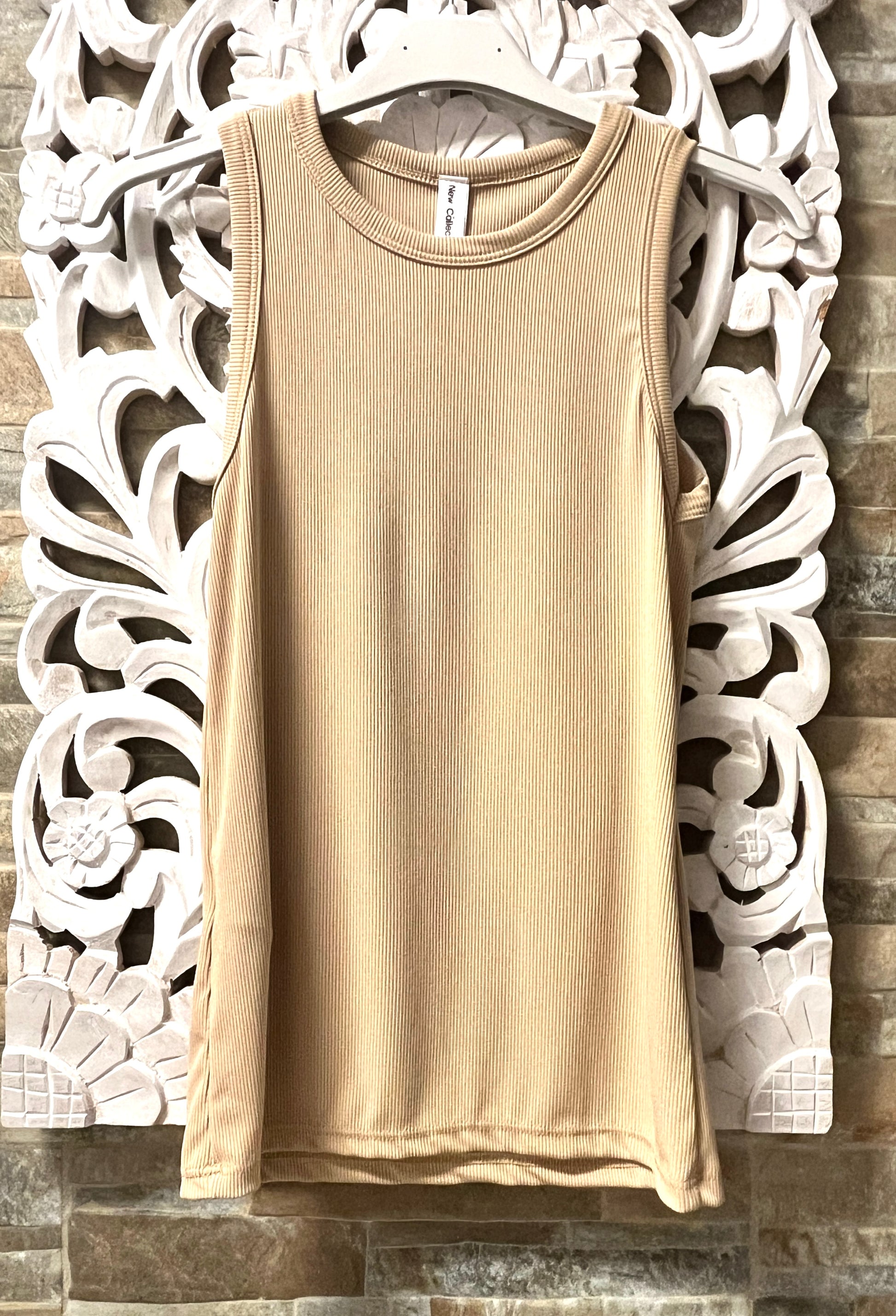 Tejido elástico en canalé en color beis. Se adapta desde una talla 36 a 40.