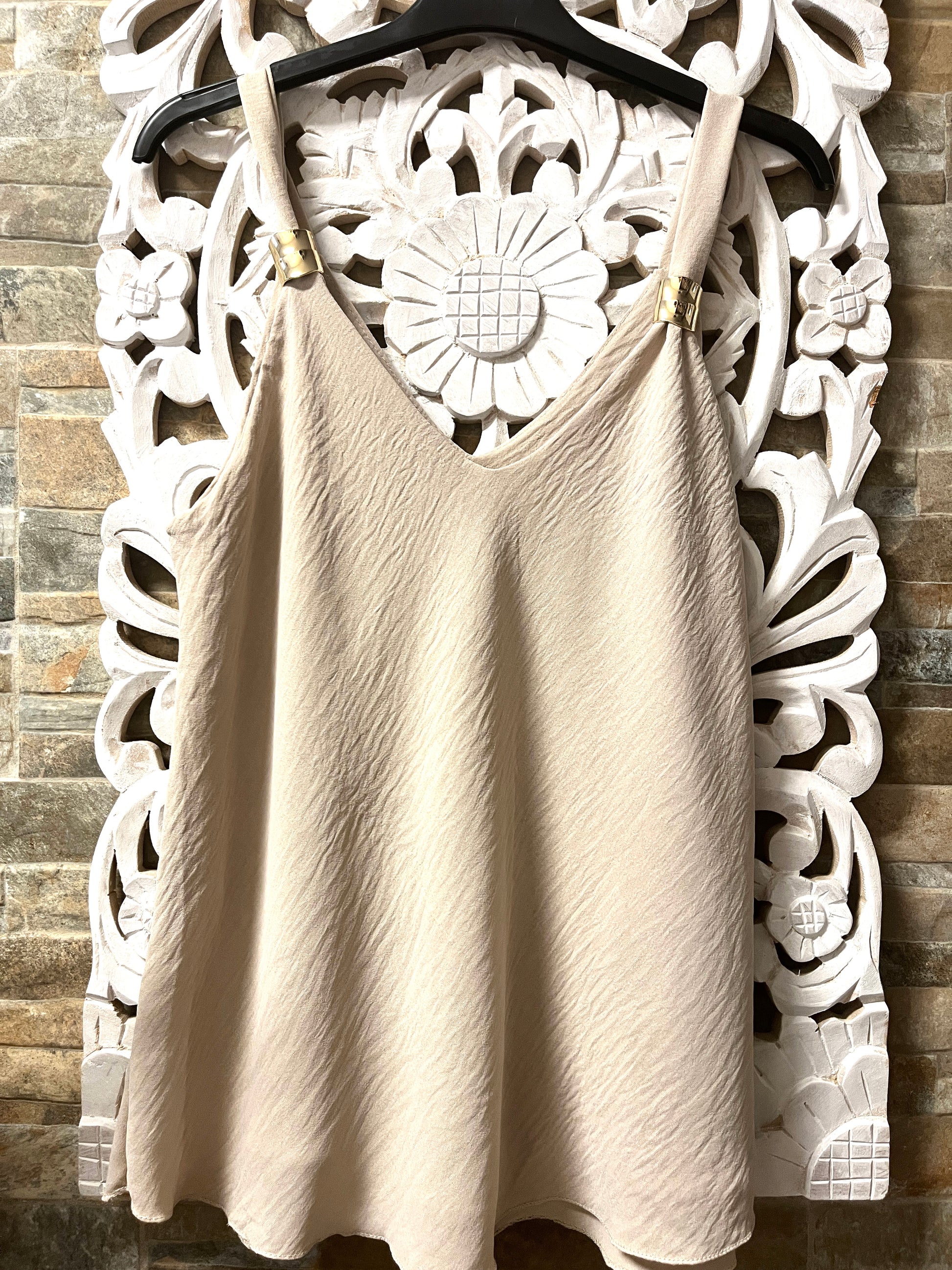 Top tirantes con detalles en dorado. Talla única que abarca entre la 36 y 40.